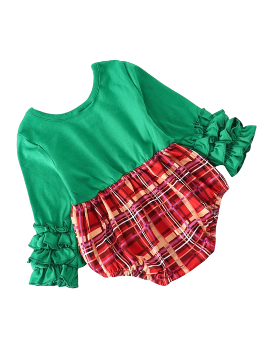 Green Ruffle Sleeve Tartan Plaid Romper