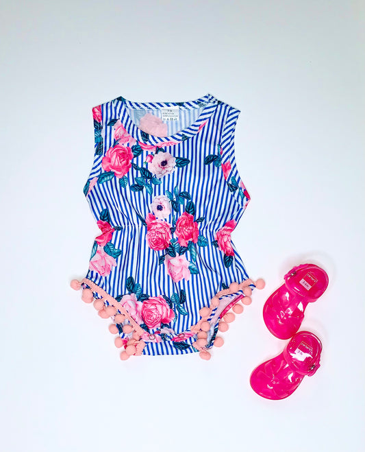 Floral Striped Sleeveless Romper