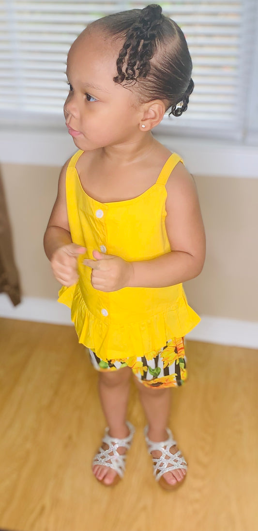 Yellow Sleeveless Top and Floral Striped Shorts
