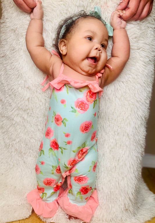 Mint Floral Ruffle Romper