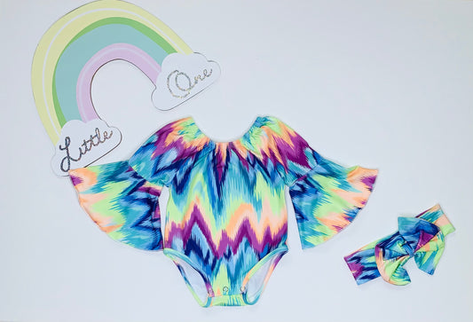 Bell Sleeve Chevron Tie Dye Romper
