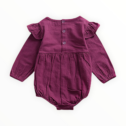 Purple Long Sleeve Ruffle Romper