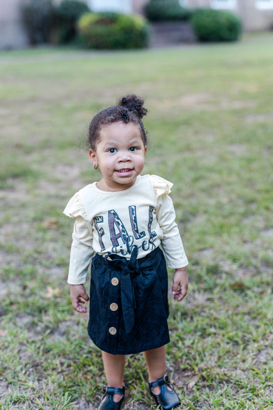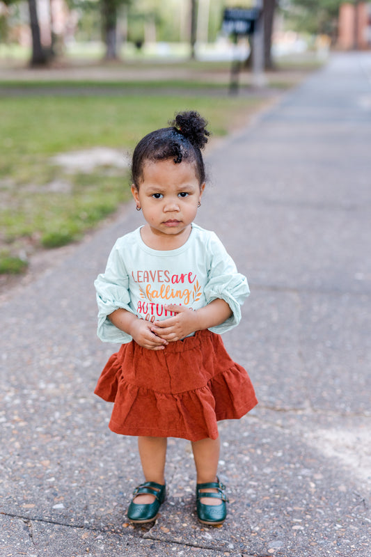Red Flared Long Sleeve Top and Plaid Suspender Skirt