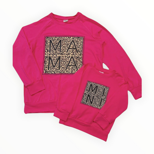 “Mama and Mini” Leopard Printed Hot Pink Tops