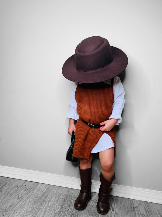 White Long Sleeve Shirt Dress with Split Hem Vest and Belt